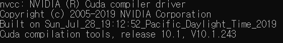 다시 시작한 후 cmd나 anaconda prompt에서 nvcc -V를 입력하면 아래와 같은 정보가 나타날 것이다.
